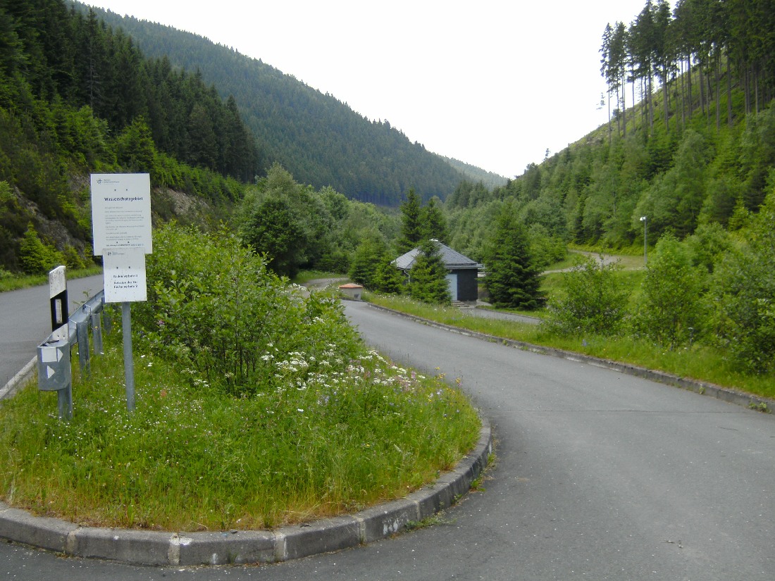 Jetzt kommt die asphaltierte Betreiberstraße entlang des Stausees Lichte- Leibis und der Vorsperre Deesbach. Diese ist nur für Fußgänger und Radfahrer zugelassen.