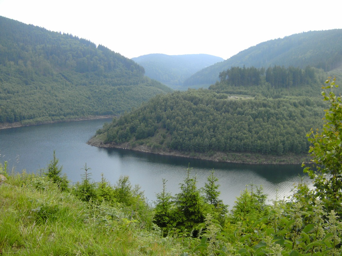 Nach kurzer Zeit ist das Lichtetal mit dem Stausee Lichte zu sehen.