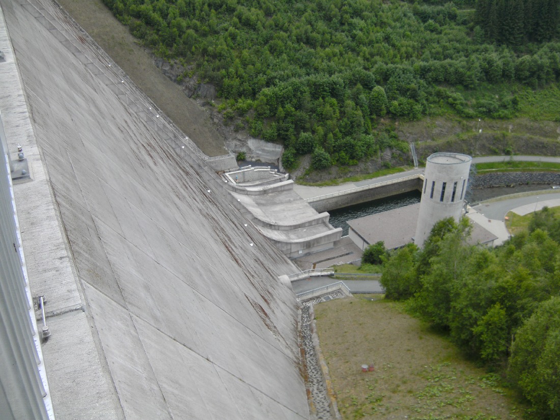 Für Mountainbiker die Nutzung des steilen Fußgängerabstieges rechts der Staumauer ( von vorn gesehen).