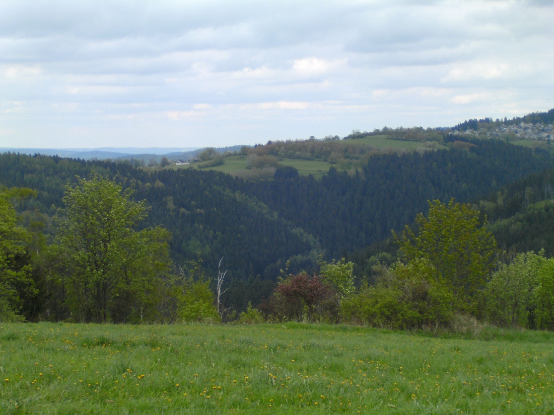 Mit vielen schönen Panoramablicken in alle Richtung wird jetzt der obere Ort von Meuselbach erreicht.